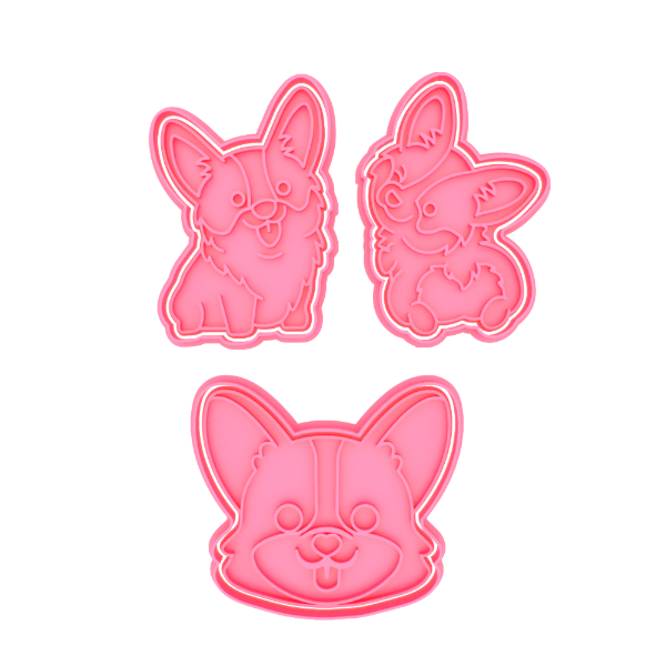 Set x 3 Cortante con Stamp Set Perros Corgis 1
